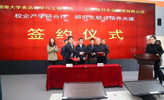 会上,盘锦市大洼区区委副书记王晨表示,渤海大学与辽宁每日农业集团有限公司联合打造的辽宁大洼对虾科技小院,预示着大洼区贯彻落实科教兴农、乡村振兴战略以更坚实的步伐向更高质量发展迈进,将进一步拓展大洼区农业领域产学研用的深度和广度,推动大洼区农副食品产业全面升级,加快大洼区农业现代化建设。同时,希望渤海大学、辽宁每日农业集团有限公司以及科技小院专家团队继续深耕大洼农业领域,在更多重大项目研发、更高层次人才培育等方面积极作为,推动加快科技成果转化,服务地方经济发展,助力乡村振兴,为大洼经济社会发展贡献力量。辽宁每日农业集团董事长张玉满与渤海大学食品科学与工程学院院长、科技小院首席专家李学鹏分别致辞,并共同为辽宁大洼对虾科技小院揭牌,同时签订了《产学研合作协议》和《产教融合研究生联合培养与实践教育基地共建协议》。李学鹏介绍了渤海大学食品科学与工程学院学科建设、科学研究、人才培养等概况,并介绍了科技小院获批和建设的有关情况,表示对科技小院的未来发展充满信心,希望参建各方同心协力,将其建设成为全国知名的示范科技小院,助力乡村振兴和辽宁全面振兴。随后,盘锦市大洼区科协主席邵宝东主持召开了创新产业发展座谈会,与会各方对企业科技创新、科教兴农、乡村振兴等话题进行了充分交流。仪式结束后,与会人员一行参观了辽宁每日农业集团对虾种苗培育车间,详细了解了对虾养殖加工方面的技术需求。