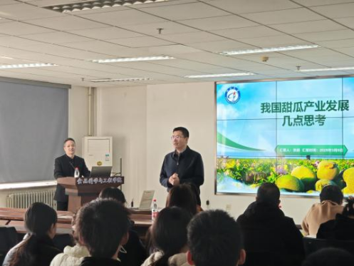 2025年3月10日,国家西甜瓜产业技术体系副首席科学家张超研究员,应邀为食品科学与工程学院全体师生作题为《我国甜瓜产业发展的几点思考》的学术报告。此次报告由刘贺教授主持,全院共计100余名师生聆听报告。