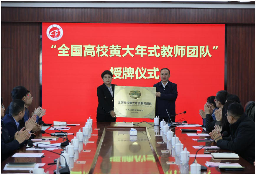 会上,丛茂国为全国高校黄大年式教师团队代表颁发牌匾,代表学校党委对励建荣教授带领的“生鲜农产品贮藏加工及安全控制教师团队”获教育部第三批“全国高校黄大年式教师团队”创建示范活动认定表示热烈祝贺,并就进一步弘扬黄大年精神、巩固团队创建成果提出指导性意见。赵建国就进一步加强全校科研团队建设做了部署讲话,从切实增强团队建设意识、强化有组织科研、推动科研范式转型、构建团队建设新格局、压实二级学院主体责任等方面提出了工作要求。潘德昌宣读了教育部第三批“全国高校黄大年式教师团队”创建示范活动认定名单。食品科学与工程学院副院长仪淑敏从凝练特色方向、构建人才梯队、加强有组织科研、深化产学研用深度融合等方面分享了团队建设经验。马克思主义学院副院长尹燕领学宣讲了“心有大我、至诚报国”的黄大年精神,号召全体教师夯实为党育人、为国育才的思想根基。